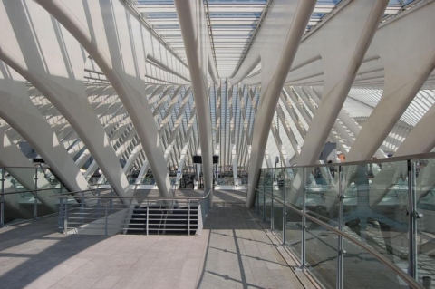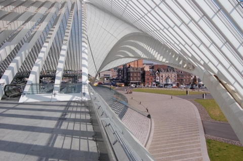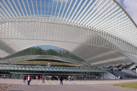 - La gare de Liège-Guillemins est un carrefour important du réseau ferroviaire belge. Elle est également gare TGV internationale, en accueillant l'ICE allemand et le Thalys. C'est un carrefour multimodal majeur de la ville principautaire qui met en relation train à grande vitesse, train IC, bus, liaison avec l'autoroute, taxi, navette vers l'aéroport et bientôt une ligne de tramway. La nouvelle gare, œuvre de l'architecte espagnol Santiago Calatrava Valls, a été inaugurée le 18 septembre 2009 après une dizaine d'années de travaux.