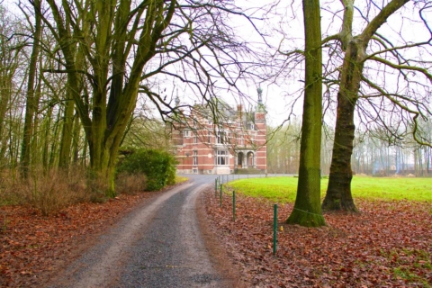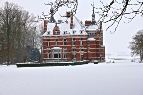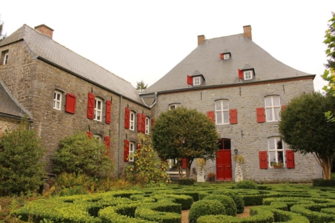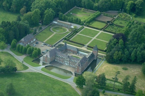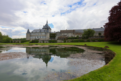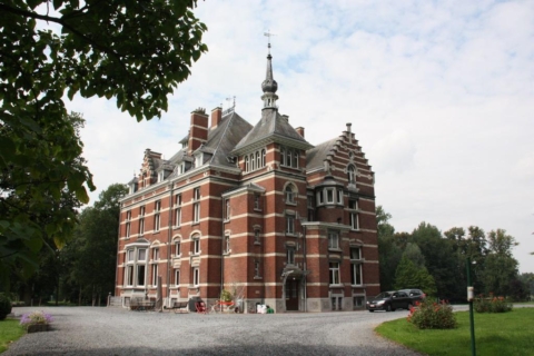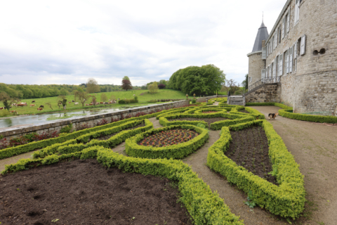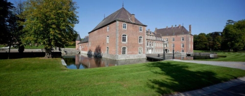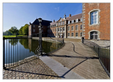 - Ce magnifique ensemble architectural de briques et de pierres bleues se dresse entre Meuse et Hesbaye au milieu d'un vaste parc paysager, de jardins à la française et de romantiques pièces d'eau.