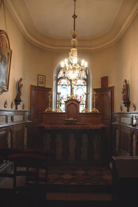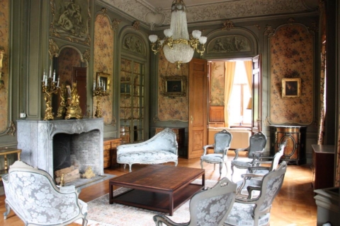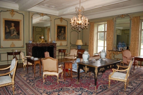 - Construit entre 1763 et 1768, ce bâtiment est un joyau du patrimoine architectural. La façade du château, de style néo-classique, a été édifiée en pierre bleue. Elle est flanquée de deux longues galeries palladiennes à colonnes ioniques, qui abritent des statues et des vases sculptés à l'antique, et conduisent respectivement à une chapelle et une conciergerie. Le parc, aménagé en partie à la française et en partie à l'anglaise, s'étend sur 22 hectares; il comprend un grand bassin central et un étang orné d 'une île romantique que l'on atteint en passant par une passerelle arquée en fer forgé.