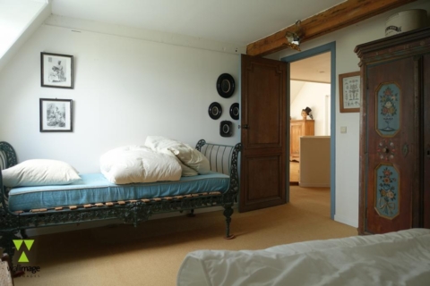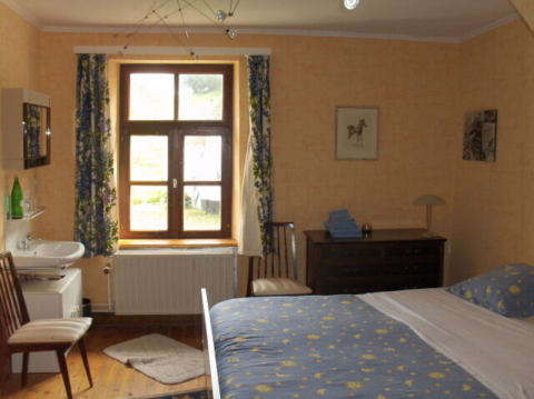 - Ancienne ferme rénovée située dans un site protégé, verdoyant, parcouru d'un ruisseau, avec écurie, grange à charpente sur pillier (originalité: du marbre blanc au sol!), et chambres d'hôtes.