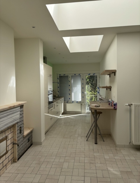 Maison | Deux maisons début XXe siècle, réunies en une seule. 6 pièces en bas, 4 à l’étage, grenier, cave, grand jardin, terrasse. Elle vient d’être rénovée et est donc non meublée. | Colfontaine | Électricité 220v Eau courante Gaz Toilettes Parking | 08.05.2025 | |