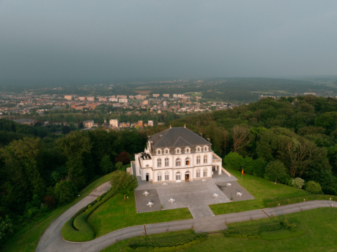 - Construit au tout début des années 1900, le château est une élégante bâtisse située à la lisière de la forêt, dans un environnement calme et verdoyant à proximité de Namur. Son architecture sobre et symétrique, typique des demeures de cette époque, confère au lieu une atmosphère à la fois distinguée et chaleureuse. Le lieu dégage une image prestigieuse, et peut aisément être perçu comme une demeure privée très chic ou le siège d'une société ou encore la résidence d'un chef d'État ou d'autres personnalités. Entouré d’un grand parc, le château bénéficie d’un cadre naturel paisible, sans constructions modernes visibles alentour. Le travail architectural des façades, les allées de graviers, la plaine dégagée et les perspectives sur les bois environnants offrent de nombreuses possibilités de mise en scène. À l’intérieur, les volumes sont généreux, avec de hautes fenêtres laissant largement entrer la lumière. Le rez-de-chaussée se compose de plusieurs salles à manger/salons en enfilade et d'une bibliothèque, au charme authentique d'un château d'époque. Le premier étage, disposant d'un magnifique bar et d'un ensemble de salons, étant plus lumineux et un peu plus moderne permet une grande liberté d’adaptation pour différents types de tournage. Le lieu est fonctionnel, épuré, et facilement transformable tout en conservant son cachet. Il y a également un deuxième étage beaucoup plus moderne (utilisé pour des conférences) qui peut être utilisé comme pièce de tournage également ou comme espace technique pour le tournage. Une cuisine ultra équipée est également sur place, au sous-sol et peut également être utilisée pour des tournages. Accessible et disponible pour des projets ponctuels ou de plus longue durée, le château offre un cadre neutre, élégant et modulable, propice aussi bien aux reconstitutions d’époque qu’aux récits contemporains. Le lieu dispose d'un accès facile, d'un parking assez vaste, et d'un ascenseur.