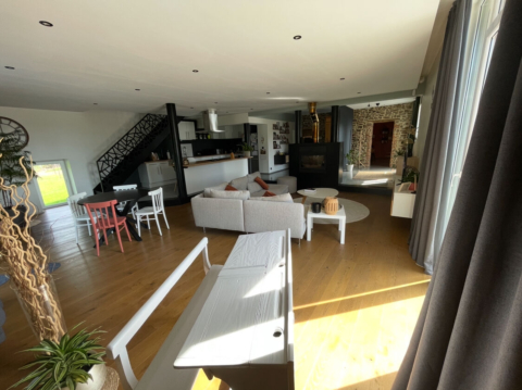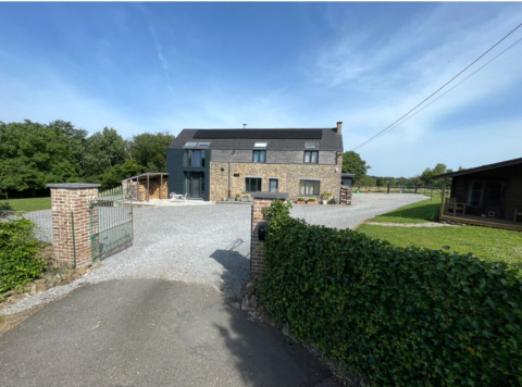 - Corps de ferme isolé à la campagne en pierre et acier noir. Grand parking de 200m2 et terrasse de 70m2 avec piscine hors sol. Intérieur de 300m2 moderne et murs en pierres. Grand jardin en bordure d’un bois et prairie avec chevaux.