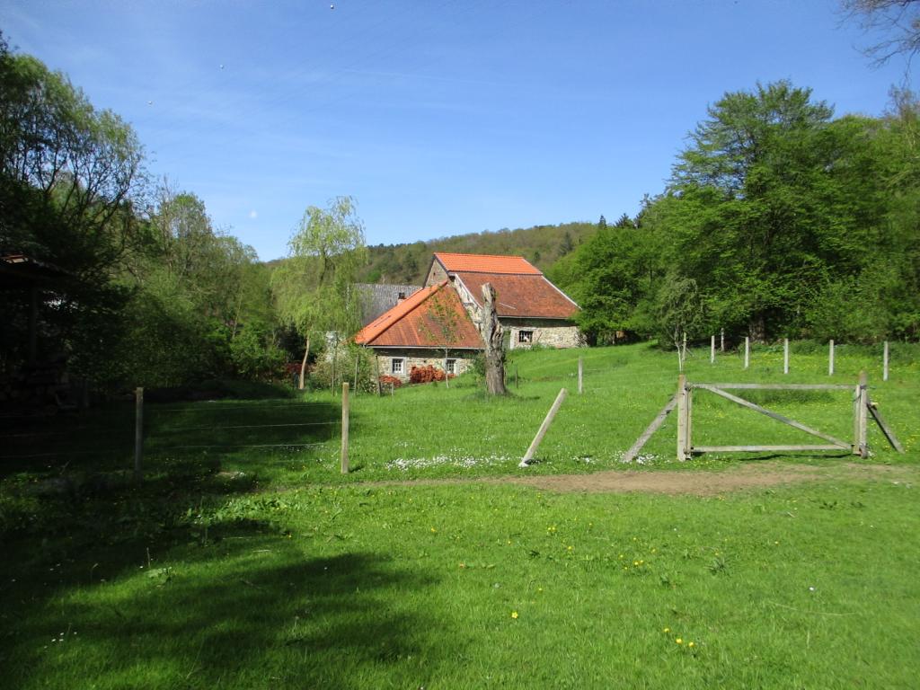 - La propriété (2 ha) se situe à quelques pas de la ville de Spa. Seulement les extérieurs et le rdc (petites pièces) sont accessibles. La propriété se compose de deux grands bâtiments en pierres du pays avec d'épaisses murailles d'un mètre d'épaisseur, longée d'un ruisseau sur toute sa longueur. Actuellement havre de paix et de verdure en cours d'une rénovation respectueuse, cette propriété fut jadis une forge (appellée aussi Marteau) qui s'activait au centre d'une vallée sidérurgique à la transformation du fer. Elle est seulement accessible par un petit pont traversant le ruisseau et cernée de l'autre côté par une colline boisée. Les pièces intérieures sont très petites et la route est proche (bruit).