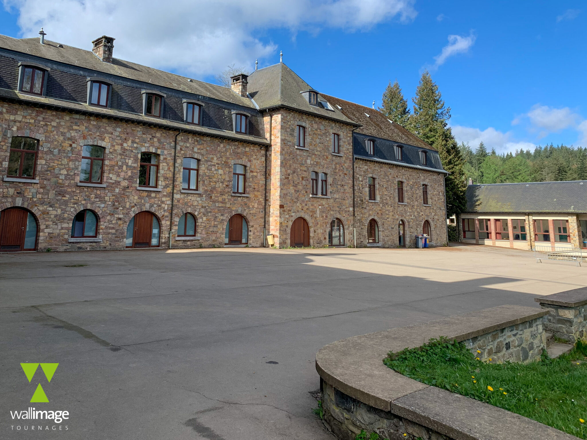 - Ancien château, le domaine est un endroit unique, niché au cœur de la forêt ardennaise, dans la vallée de la Salm. Il accueille les groupes en réflexion, les élèves en classe verte, les scouts... Dans un cadre naturel magnifique, niché au coeur des forêts , le château surplombe le plateau géologique de la haute Ardennes. Le domaine est composé du château et de ses salons mais également de différents bâtîments tels que des dortoirs, deux chapelles, un espace d'atelier et d'un bâtiment de type plus scolaire (ancienne école). Il est entouré d'une forêt d'épicéa ainsi que d'un parc comprenant une grande variété d'essences d'arbres (ancien arboretum). On retrouve dans la forêt proche du château deux étangs. Le château fait face à une grande prairie. Le panorama est dégagé (paysage composé de prairies et de lisières de forêt,). Les conditions météorologiques de la région font qu'il peut y avoir entre décembre et mars d'épaisses couches de neige. Le domaine possède de nombreuses qualités logistiques utiles à un tournage : un très grand parking, de nombreuses salles vides et spacieuses, de nombreuses chambres et dortoirs si besoin de loger, le wifi, une alimentation en électricité partout, ect ...