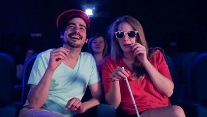 En salle de cinéma, la personne déficiente visuelle est équipée d’un casque qui lui permet de suivre le film en compagnie de spectateurs voyants. Pour les contenus télévisuels — comme pour les DVD — l’audiodescription et les sous-titres spéciaux sont disponibles dans les options de configuration.